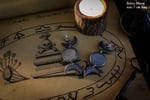 Hand-made polymer clay earrings mixed with other materials, textures and other art mediums.